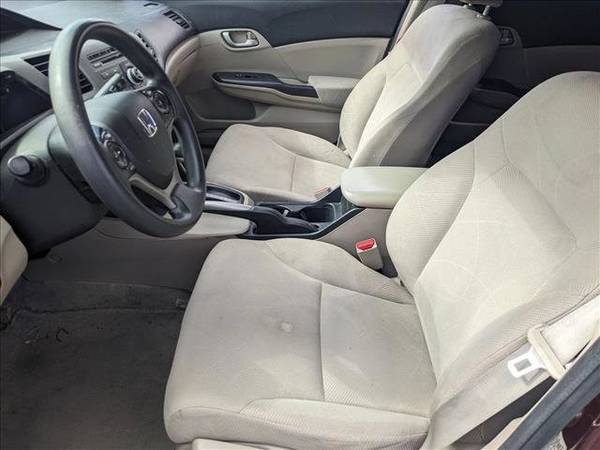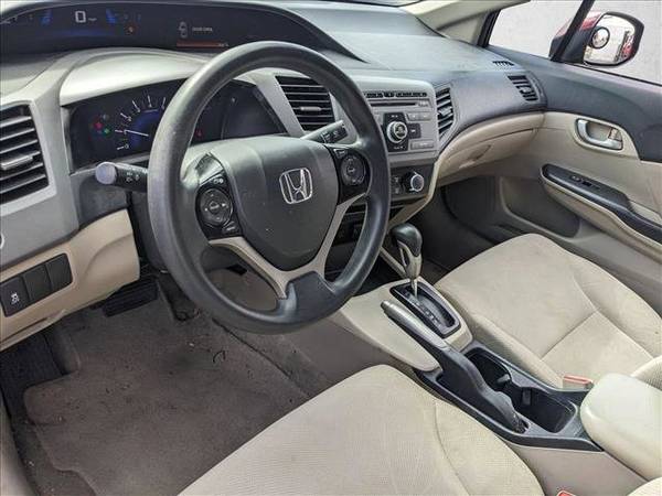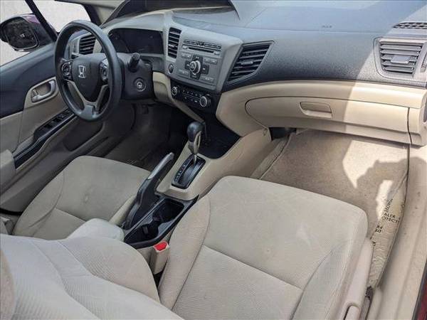 This vehicle includes a Money-Back Guarantee* and passed our precise inspection process. Best of all the price you see is the price you pay. No haggling. No back and forth. No pressure. And this price is so good it is guaranteed. *Money-Back Guarantee is valid for 5 days or 250 miles, whichever comes first. Subject to certain terms and conditions. See store for details. Some restrictions apply.Check out this pre-owned 2012 Honda Civic Sdn we recently got in. Stylish and fuel efficient. It's the perfect vehicle for keeping your fuel costs down and your driving enjoying up. One of the best things about this Honda Civic Sdn is that it has low, low mileage. It's ready for you to truly break it in. You've found the one you've been looking for. Your dream car. More information about the 2012 Honda Civic Sdn: For decades the Civic has offered one of the best compact-car picks for those who want to keep their ownership costs low and plan to keep their cars a long time. The Civic is also one of the roomiest small sedans, with even better ride comfort and interior refinement this year. The top EX-L can still be appointed with the works--including a navigation system and full leather upholstery--making it feel more like a compact luxury sedan than an affordable commuter. Interesting features of this model are Eager, responsive driving feel, good ride quality, and roomy interior in the sedan