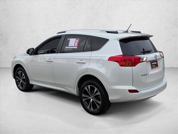 * Sun/Moonroof * Blizzard Pearl Premium Package * Navigation System * Keyless Start * Rear Spoiler * 50 State Emissions * Black; Softex Seat Trim * Blizzard PearlThis vehicle includes a Money-Back Guarantee* and passed our precise inspection process. Best of all the price you see is the price you pay. No haggling. No back and forth. No pressure. And this price is so good it is guaranteed. *Money-Back Guarantee is valid for 5 days or 250 miles, whichever comes first. Subject to certain terms and conditions. See store for details. Some restrictions apply.Check out this pre-owned 2015 Toyota RAV4 we recently got in. This Toyota RAV4 Limited has a tough exterior complemented by a well-designed interior that offers all the comforts you crave. The impressive Toyota fuel-efficiency will make you quickly realize what you've been missing out on in life. It's noteworthy fuel economy and minimal emissions make this vehicle's value a cut above the rest. Driven by many, but adored by more, the Toyota RAV4 Limited is a perfect addition to any home. More information about the 2015 Toyota RAV4: The RAV4 was one of the first modern crossover utility vehicles and since its redesign in 2013, it's been a better fit for the habits of its most common buyer-- families who want a fuel-efficient, reliable, easy-to-park vehicle. A capable all-wheel drive system makes the RAV4 a smart pick for those needing to commute through snowy winters or a trip to the mountain. Strengths of this model include Roomy interior for a compact SUV, capable all-wheel-drive system, safety features, excellent connectivity and audio systems, and fuel-efficiency