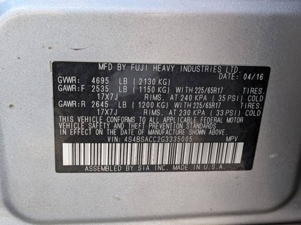 * Rear Spoiler * Ice Silver Metallic * Slate Black; Cloth Upholstery * Standard ModelThis vehicle includes a Money-Back Guarantee* and passed our precise inspection process. Best of all the price you see is the price you pay. No haggling. No back and forth. No pressure. And this price is so good it is guaranteed. *Money-Back Guarantee is valid for 5 days or 250 miles, whichever comes first. Subject to certain terms and conditions. See store for details. Some restrictions apply.You can find this 2016 Subaru Outback 2.5i Premium and many others like it at AutoNation Acura Stevens Creek. With this exceptional SUV, you'll get sport, utility, and comfort. Save money at the pump with this fuel-sipping Subaru Outback. You'll love the feel of AWD in this 2016 Subaru Outback. It provides a perfect balance of handling power and control in virtually every driving condition. More information about the 2016 Subaru Outback: The genius of the Outback has always been its ability to straddle classifications; it helped create the crossover segment in the 1990s. As such, the Outback competes with family cars, SUVs and, of course, other crossover vehicles. With a base price just short of $25,000, the Outback should be affordable enough for families considering a new Camry or Accord. With better off-road credentials and a more usable luggage compartment, the Outback offers increased versatility over plain Jane family sedans. At the same time, the Subaru Outback offers the kind of fuel economy that most mid-sized SUVs struggle to match. Interesting features of this model are fuel-efficient transmissions, good ground clearance, spacious interior, Versatility, and standard all-wheel drive