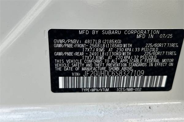 Trim: Premium suv Mileage: 10 Exterior Color: White Pearl Interior Color: Gray Engine: 4/2.5 Drive: awd Transmission: Lineartronic CVT VIN: JF2GUHDC6S8327109