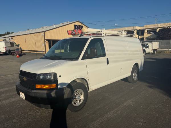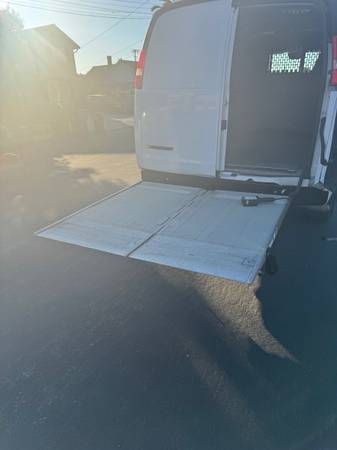 2019 Chevrolet 3500 Express Van with Liftgate, only 112k mi, newer tires, Tommygate liftgate 1300 lb capacity, shelves and drawers. Van is loaded rear view camera with side cameras that activate when blinker is turned on( like a tesla) vinyl seats, am/fm stereo, pwr doors and mirrors, 110v pwr inverter built in, Van is ready to Work!!!!!