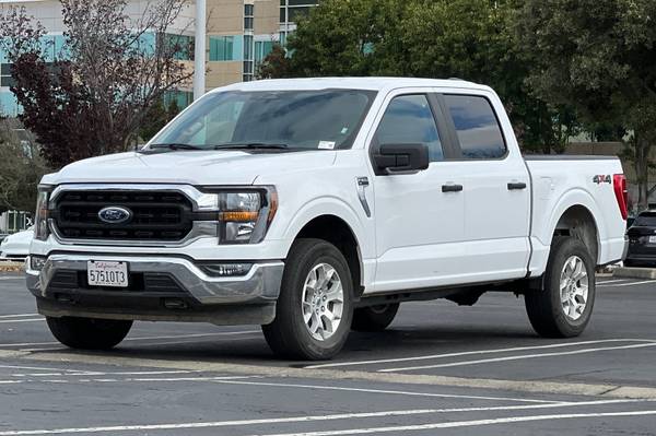 PREVIOUS DAILY RENTAL, PRICES INCLUDE MANUFACTURE REBATES, CHECK WITH DEALER. Backup Camera, Bluetooth, Alloy Wheels, Audio Package, Climate Package, Comfort Package, Heat Package, Light Package, NON SMOKER, Power Mirror Package, Power Package, Security Package, Sound Package, F-150 XLT, 4D SuperCrew, 3.5L V6 EcoBoost, 10-Speed Automatic, 4WD, Oxford White, Black/Slate Gray w/Unique Cloth 40/Console/40 Front Seats, 4-Wheel Disc Brakes, 6 Speakers, ABS brakes, Air Conditioning, Alloy wheels, AM/FM radio, Auto High-beam Headlights, Brake assist, Bumpers: chrome, Cloth 40/20/40 Front Seat, Compass, Delay-off headlights, Driver door bin, Driver vanity mirror, Dual front impact airbags, Dual front side impact airbags, Electronic Stability Control, Emergency communication system: SYNC 4 911 Assist, Exterior Parking Camera Rear, Front anti-roll bar, Front Center Armrest w/Storage, Front reading lights, Front wheel independent suspension, Fully automatic headlights, Heated door mirrors, Illuminated entry, Low tire pressure warning, Occupant sensing airbag, Outside temperature display, Overhead airbag, Overhead console, Panic alarm, Passenger door bin, Passenger vanity mirror, Power door mirrors, Power steering, Power windows, Radio data system, Radio: AM/FM Stereo w/6 Speakers, Rear reading lights, Rear step bumper, Rear window defroster, Remote keyless entry, Security system, Speed control, Speed-sensing steering, Split folding rear seat, Steering wheel mounted audio controls, SYNC 4, Tachometer, Telescoping steering wheel, Tilt steering wheel, Traction control, Trip computer, Variably intermittent wipers, Voltmeter. CARFAX One-Owner. Oxford White 2023 Ford F-150 XLT 4WD 10-Speed Automatic 3.5L V6 EcoBoost