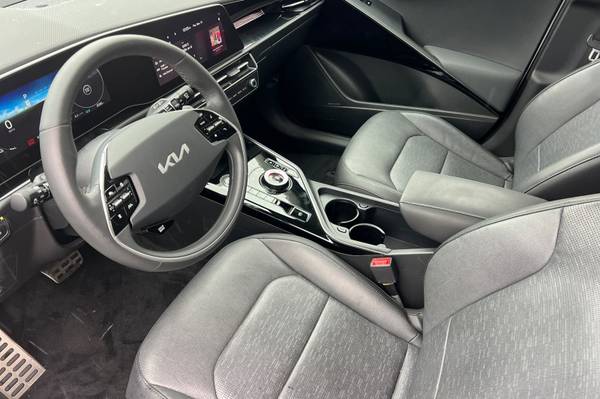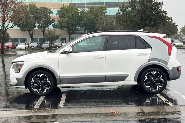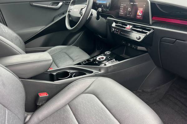 Backup Camera, Bluetooth, Alloy Wheels, Audio Package, Climate Package, Comfort Package, Heat Package, Leather Seats, Light Package, NON SMOKER, One Owner Carfax, Power Mirror Package, Power Package, Security Package, Sound Package, Niro EV Wave, 4D Sport Utility, Electric Motor, 1-Speed Automatic, FWD, Snow White Pearl, Charcoal Leather, 10.65 Axle Ratio, 4-Wheel Disc Brakes, 8 Speakers, ABS brakes, Air Conditioning, Alloy wheels, AM/FM radio: SiriusXM, Apple CarPlay & Android Auto, Auto High-beam Headlights, Auto-dimming Rear-View mirror, Automatic temperature control, Brake assist, Bumpers: body-color, Carpet Floor Mats, Delay-off headlights, Driver door bin, Driver vanity mirror, Dual front impact airbags, Dual front side impact airbags, Electronic Stability Control, Emergency communication system: Kia Connect (includes 1 year free trial), Exterior Parking Camera Rear, Four wheel independent suspension, Front anti-roll bar, Front Bucket Seats, Front Center Armrest, Front dual zone A/C, Front reading lights, Fully automatic headlights, Garage door transmitter: HomeLink, Gray C-Pillar Trim, harman/kardon® Speakers, Heated & Ventilated Front Bucket Seats, Heated door mirrors, Heated front seats, Heated steering wheel, Illuminated entry, Knee airbag, Low tire pressure warning, Memory seat, Navigation System, Occupant sensing airbag, Outside temperature display, Overhead airbag, Overhead console, Panic alarm, Passenger door bin, Passenger vanity mirror, Perforated Vegan Leather-Trimmed Seats, Power door mirrors, Power driver seat, Power Liftgate, Power moonroof, Power passenger seat, Power steering, Power windows, Radio: harman/kardon Premium Audio System, Rain sensing wipers, Rear anti-roll bar, Rear seat center armrest, Rear window defroster, Rear window wiper, Remote keyless entry, Security system, Speed control, Speed-sensing steering, Split folding rear seat, Spoiler, Steering wheel mounted audio controls, Telescoping steering wheel, Tilt steering wheel, Traction control, Trip computer, Turn signal indicator mirrors, Variably intermittent wipers, Ventilated front seats. CARFAX One-Owner. Certified. Snow White Pearl 2023 Kia Niro EV Wave FWD 1-Speed Automatic Electric Motor