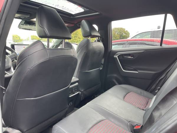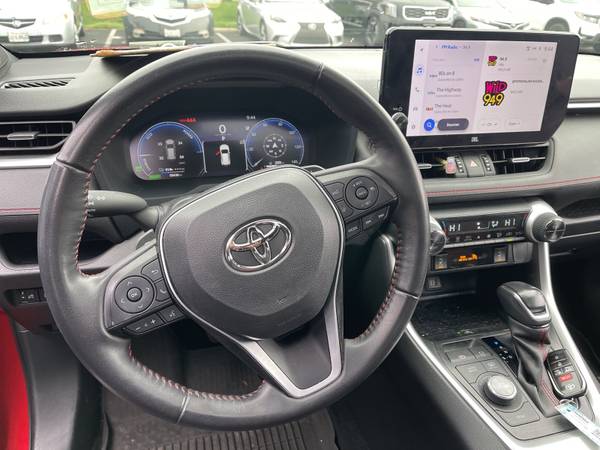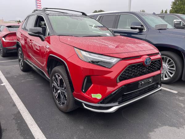 Backup Camera, Bluetooth, Alloy Wheels, Audio Package, Climate Package, Comfort Package, Heat Package, Light Package, NON SMOKER, Power Mirror Package, Power Package, Premium Sound Package, Security Package, Sound Package, RAV4 Prime XSE, 4D Sport Utility, 2.5L 4-Cylinder DOHC, CVT, AWD, Supersonic Red/Midnight Black Metallic, Black w/Mixed Media Seat Trim or SofTex Seat Trim, 11 Speakers, 3-Spoke Heated Leather Steering Wheel, 4-Wheel Disc Brakes, ABS brakes, Air Conditioning, Alloy wheels, AM/FM radio: SiriusXM, Auto High-beam Headlights, Auto-dimming Rear-View mirror, Automatic temperature control, Brake assist, Bumpers: body-color, Delay-off headlights, Driver door bin, Driver vanity mirror, Dual front impact airbags, Dual front side impact airbags, Electronic Stability Control, Emergency communication system: Safety Connect (10-year trial), Exterior Parking Camera Rear, Four wheel independent suspension, Front anti-roll bar, Front Bucket Seats, Front Center Armrest, Front dual zone A/C, Front reading lights, Fully automatic headlights, Garage door transmitter: HomeLink, Heated door mirrors, Heated front seats, Heated Front Sport Seats, Illuminated entry, JBL Audio System, Knee airbag, Leather Shift Knob, Low tire pressure warning, Mixed Media Seat Trim, Occupant sensing airbag, Outside temperature display, Overhead airbag, Overhead console, Panic alarm, Passenger door bin, Passenger vanity mirror, Power door mirrors, Power driver seat, Power Liftgate, Power moonroof, Power steering, Power windows, Radio data system, Rain Sensing Wipers w/De-Icer Function, Rear anti-roll bar, Rear seat center armrest, Rear window defroster, Rear window wiper, Remote keyless entry, Security system, Speed control, Speed-sensing steering, Split folding rear seat, Spoiler, Steering wheel mounted audio controls, Telescoping steering wheel, Tilt steering wheel, Traction control, Trip computer, Turn signal indicator mirrors, Variably intermittent wipers, Weather Package. CARFAX One-Owner. Supersonic Red/Midnight Black Metallic 2023 Toyota RAV4 Prime XSE AWD CVT 2.5L 4-Cylinder DOHC