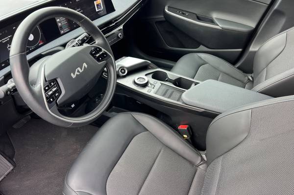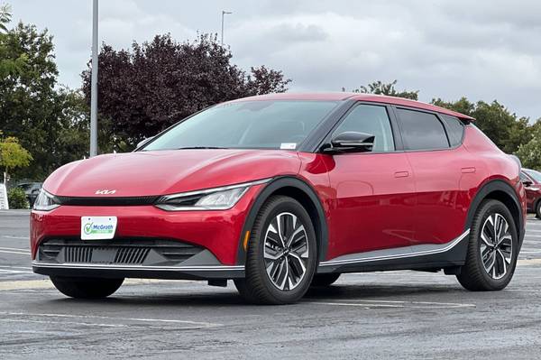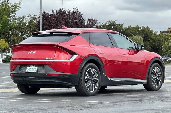 Backup Camera, Bluetooth, Alloy Wheels, Audio Package, Climate Package, Comfort Package, Heat Package, Leather Seats, NON SMOKER, One Owner Carfax, Power Mirror Package, Power Package, Security Package, Sound Package, EV6 Light, 4D Sport Utility, Electric Motor, 1-Speed Automatic, AWD, Runway Red, Black w/Vegan Leather Seat Trim or SynTex Suede Seat Trim w/Vegan Leather Accents or Vegan Leather Seat Trim w/SynTex Suede Accents, 4-Wheel Disc Brakes, 6 Speakers, ABS brakes, Air Conditioning, Alloy wheels, AM/FM radio: SiriusXM, Apple CarPlay & Android Auto, Auto High-beam Headlights, Auto-dimming Rear-View mirror, Automatic temperature control, Axle Ratio: 10.650, Brake assist, Bumpers: body-color, Carpet Floor Mats, Delay-off headlights, Driver door bin, Driver vanity mirror, Dual front impact airbags, Dual front side impact airbags, Electronic Stability Control, Emergency communication system, Four wheel independent suspension, Front anti-roll bar, Front Bucket Seats, Front Center Armrest, Front dual zone A/C, Front reading lights, Fully automatic headlights, Heated front seats, Heated Front Seats (3-Stage), Heated steering wheel, Illuminated entry, Knee airbag, Low tire pressure warning, Memory seat, Navigation system: AVN 5.0 Navigation System, Occupant sensing airbag, Outside temperature display, Overhead airbag, Overhead console, Panic alarm, Passenger door bin, Passenger vanity mirror, Power door mirrors, Power driver seat, Power steering, Power windows, Radio: AVN 5.0 Navigation System w/SiriusXM, Rain sensing wipers, Rear anti-roll bar, Rear seat center armrest, Rear window defroster, Recycled Fabric & Vegan Leather Seat Trim, Remote keyless entry, Security system, Speed control, Speed-sensing steering, Split folding rear seat, Spoiler, Steering wheel mounted audio controls, Telescoping steering wheel, Tilt steering wheel, Traction control, Trip computer, Turn signal indicator mirrors, Variably intermittent wipers. CARFAX One-Owner. Certified. Runway Red 2024 Kia EV6 Light AWD 1-Speed Automatic Electric Motor
