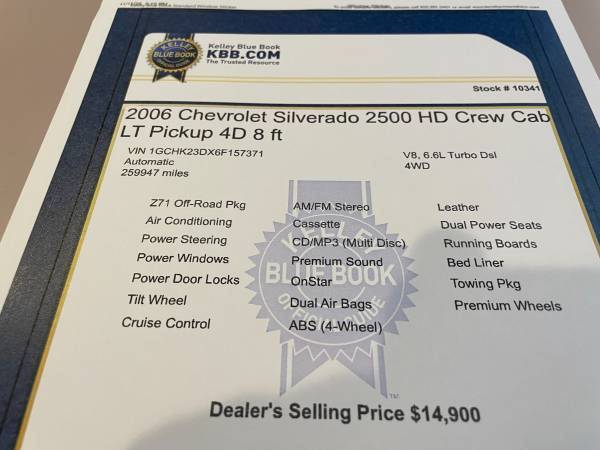 Stock#: 10341 -- VIN: 1GCHK23DX6F157371 - 259,947 miles --Price: $14,900