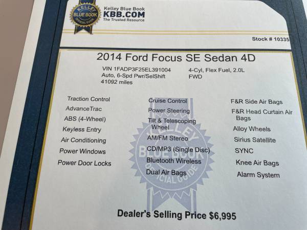 Stock#: 10335 -- VIN: 1FADP3F25EL391004 - 41,092 miles --Price: $6,995