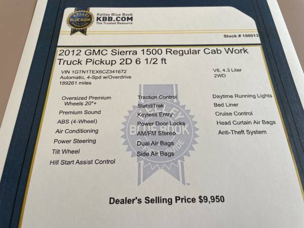 Stock#: 10310013 -- VIN: 1GTN1TEX6CZ341672 - 189,261 miles --Price: $9,950