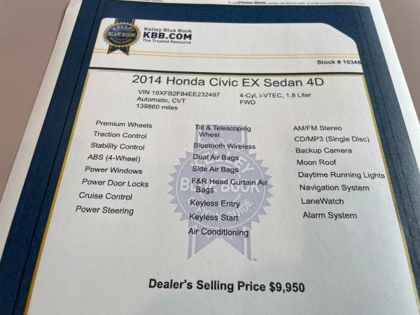 Stock#: 10348 -- VIN: 19XFB2F84EE232497 - 139,860 miles --Price: $9,950