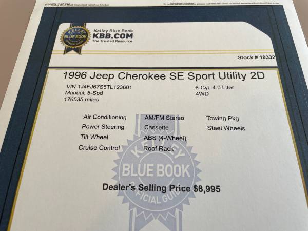 Stock#: 10332 -- VIN: 1J4FJ67S5TL123601 - 176,535 miles --Price: $8,995