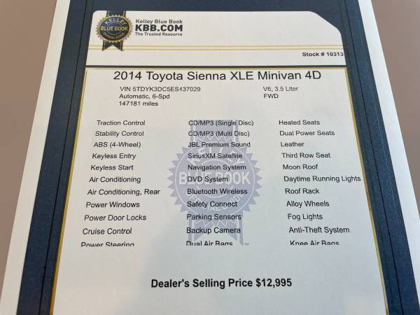 Stock#: 10313 -- VIN: 5TDYK3DC5ES437029 - 147,181 miles --Price: $12,995