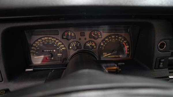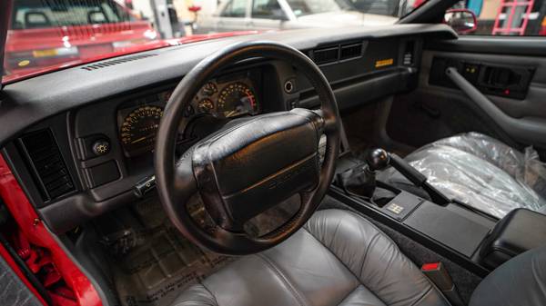 This 1991 Chevrolet Camaro Z28 coupe is one of a reported 478 examples produced for the model year with the 1LE Performance Package, and it was purchased new at Phil Wright Chevrolet in Russellville, Arkansas. The car is finished in Bright Red over gray leather and is powered by a 5.0-liter V8 linked to a five-speed manual transmission, a limited-slip differential, and a G92 performance axle ratio. Equipment includes 16″ aluminum wheels, a front lip spoiler, a rear wing, cruise control, power door locks, and a cassette stereo.