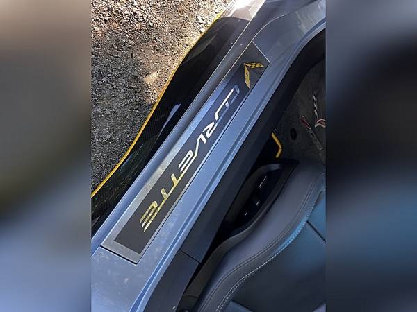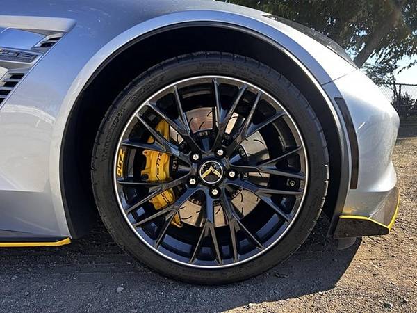 The Visible Carbon Fiber Ground Effects Package adds a touch of exclusivity, with its striking carbon fiber splitter, rockers, and a more aggressive rear spoiler. The Yellow-Painted Calipers provide a bold contrast, enhancing the Corvette's athletic stance.
