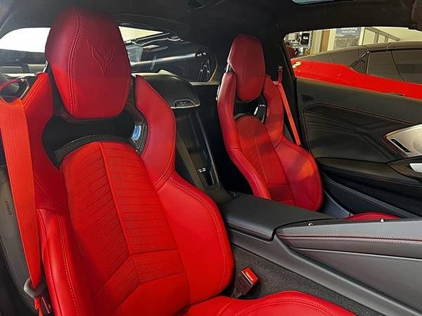 2024 Chevrolet Corvette Z06 3LZ 5.5L V8 8-Speed Dual Clutch Corvette Z06 3LZ, 2D Coupe, 5.5L V8, 8-Speed Dual Clutch, RWD, Red Mist Metallic Tintcoat, Jet Black Interior/Adrenaline Red Seats Leather, 14 Speakers, 2 Cargo Nets, Adaptive suspension, Auto-dimming door mirrors, Automatic Leveling System Headlamp Control, Battery Protection Package, Bose Performance Series Sound System w/14 Speakers, Custom Leather Wrapped Interior Package, Driver Power Bolster Seat Adjuster, Dual Roof (LPO), Electrical Theft Deterrent System, HD Front and Rear Vision Cameras, Heated and Vented Driver and Passenger Seats, Heated Steering Wheel, Memory Driver and Passenger Convenience Package, Navigation System, Passenger Power Bolster Seat Adjuster, Performance Data and Video Recorder, Power Driver Lumbar Control Seat Adjuster, Power Passenger Lumbar Control Seat Adjuster, Power-Adjustable Outside Heated Mirrors, Preferred Equipment Group 3LZ, Rear Cross Traffic Alert, Roof Panel Storage Pouch (LPO), Side Blind Zone Alert, Sueded Microfiber-Wrapped Upper Interior Trim Pkg, Universal Home Remote, Vehicle Inclination Theft Deterrent Sensor, Vehicle Interior Movement Theft Deterrent Sensor, Wireless Charging for Devices.