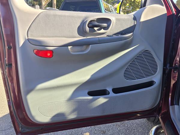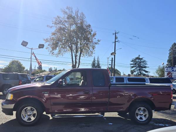 Take a joyride in this eye-catching Merlot Red Pearl Metallic 2003 Ford F-150! With its sleek exterior and robust steel wheels, this truck is ready to turn heads wherever it goes. Whether you're cruising down the highway or tackling tough terrain, the reliable ABS brakes and full-size spare tire have got you covered.