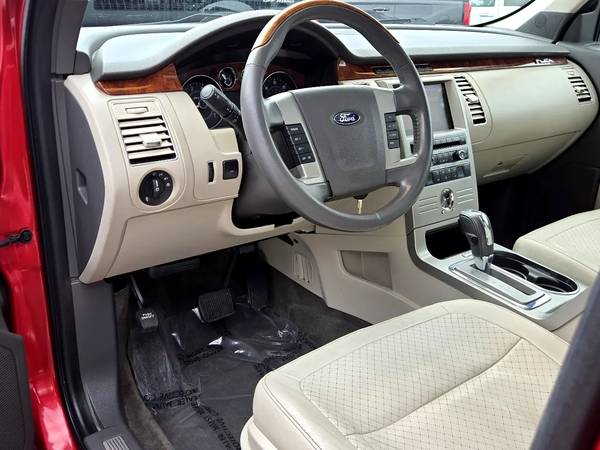 Behold the majestic 2010 Ford Flex in a striking Red Candy Pearl color, a true standout on the road. This versatile beauty is not just a car, but a companion ready for any adventure you throw its way. With safety features to keep your mind at ease and a powerful engine to fuel your wanderlust, this Flex is the perfect blend of style and functionality. Slip behind the leather steering wheel and let the steering wheel-mounted controls guide you on your journey, while the front heated seats keep you cozy. With room for the whole crew and plenty of storage options, every road trip becomes a memory in the making. Ice Box! The automatic headlights illuminate your path as you cruise down the road, turning heads with sleek alloy wheels and a power trunk lid. Whether you're rocking out to your favorite tunes on the AM/FM radio or utilizing the Telematics system for directions, this Flex has it all. Plus, with a Carfax report available, you can hit the road with confidence and peace of mind. So, buckle up and get ready to experience the world in style with this exceptional Ford Flex.