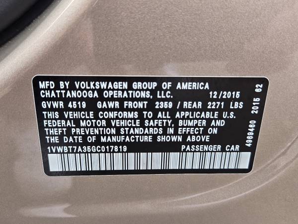 Zoom around town in style with this sleek Titanium Beige 2016 Volkswagen Passat! This luxurious sedan is not only a head-turner on the road, but it's also packed with top-notch safety features to give you peace of mind on your travels. From child safety door locks to front side airbags and traction control, this Passat has you covered.