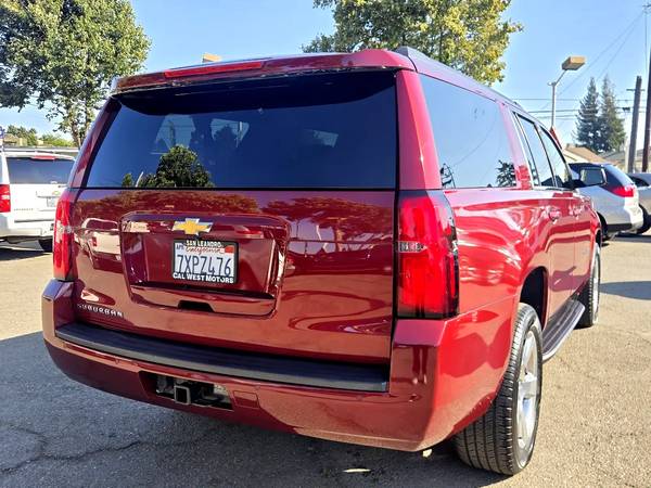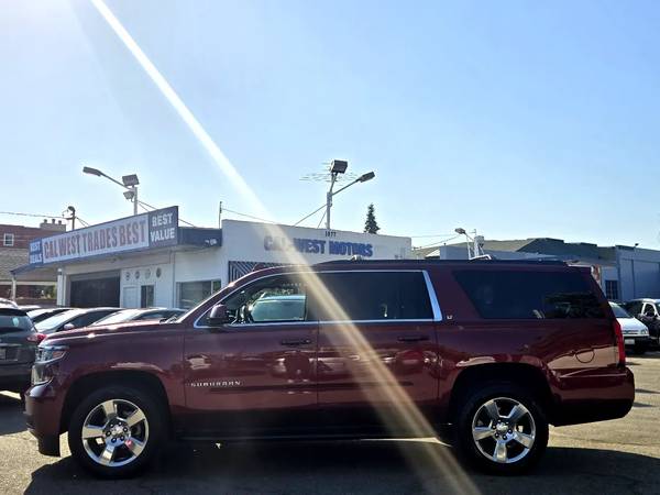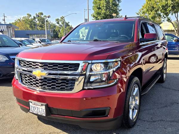 Step into luxury and style with this eye-catching Siren Red Tintcoat 2017 Chevrolet Suburban. With a Carfax one owner report available, you can feel confident in the quality and history of this vehicle. Whether you're cruising around town or embarking on a road trip, you'll appreciate the smooth ride provided by the ABS brakes, traction control, and vehicle stability control system. The driver and passengers can relax in comfort with the front heated seats, separate climate controls, and adjustable foot pedals. The telematics system, navigation aid, and subwoofer will keep you entertained and on track to your destination. Plus, the alloy wheels and running boards add a touch of sophistication to this already impressive SUV. Safety features such as the multiple airbags, child safety door locks, and tire pressure monitor will give you peace of mind on every journey. Don't miss out on the opportunity to drive home in this meticulously maintained Chevrolet Suburban - come take it for a test drive today!