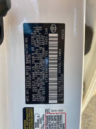 2007 Toyota Camry LE auto all power Runs great ! Clean title Smog! all power runs great all freeway miles 1 owner car . ice cold AC all works very clean in & out! Great Low Price car for you ! miles are all freeway miles 222K at a low $ 3,999 + Fees call frank at 707-280-6816 , Quinterosautosales.com , Vin : 4T1BE46K77U577150 ,