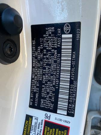 2012 Toyota Camry LE Auto all power 4clyer Smog! Clean Title ! new tires oils . brakes battery etc runs great very Nice & Clean in & Out! A Must See! all freeway miles 204K with a clean title just smog too!!! at $ 6,900 b/o + fees call frank at 707-280-6816 , Quinterosautosales.com < VIN : 4T4BF1FKXCR219214 ,