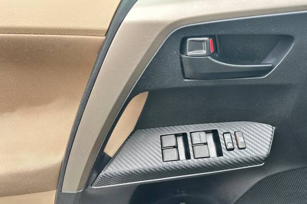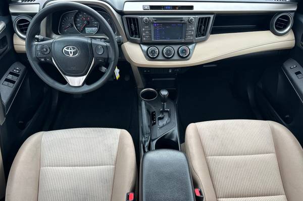 Accessories F FE 50 State Emissions F RR Roof Rails P MF Mudguard MECHANICAL & PERFORMANCE 2.5L DOHC 16V 4Cyl Engine w/Dual VVT-i 176 hp @ 6000 rpm / 172 lb-ft @ 4100 rpm 6-Speed Automatic Transmission FWD w/Auto Limited Slip Differential 4-Wheel Independent Suspension Electronic Power Steering System 4-Wheel Disc Brakes 17" Steel Whls w/Cvrs, P225/65R17 Tires SAFETY Star Safety System: Enhanced Vehicle Stability Control, Traction Control, Anti-Lock Brakes, Electronic Brake Force Distribution, Brake Assist and Smart Stop Technology Eight Standard Airbags Driver and Front Passenger Whiplash- Injury-Lessening (WIL) Seats LATCH-Lower Anchor & Tether for CHildren Child Protector Rear Door Locks Tire Pressure Monitoring System EXTERIOR Projector Beam Headlamps Rear Spoiler, Power Outside Mirrors Daytime Running Lights, Privacy Glass Acoustic Front Windshield Intermittent Windshield Wipers COMFORT & CONVENIENCE Air Conditioning with Air Filter Display Audio w/6 Spkrs, Aux, USB, BT Backup Camera, Tilt/Telescopic Steering Wheel w/Audio and Bluetooth Controls Fabric-Trimmed 6-Way Adj Dr Seat; 4-Way Adj Fr Pass Seat; 60/40 Split Reclining Fold-Flat 2nd Row Seats Remote Keyless Entry System Illuminated Entry System Power Windows, Power Door Locks Center Armrest Console Storage Box Eco/Sport Mode, Cruise Control Digital Clock 12V Auxiliary Power Outlets (2), RAV4 LE, 4D Sport Utility, 2.5L 4-Cylinder DOHC Dual VVT-i, 6-Speed Automatic, FWD, Shoreline Mist, Latte Cloth.