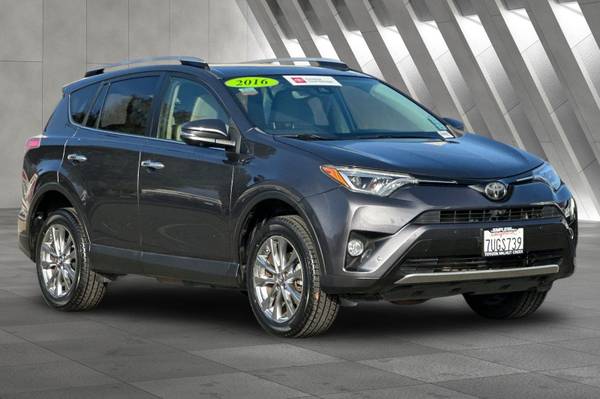 Accessories F AT Advanced Technology Package: Bird's Eye View Camera with Perimeter Scan; Entune Premium JBL Audio with Navigation and App Suite - includes the Entune Multimedia Bundle (7-in high Resolution Touch-screen with Split Screen Display and Integrated Backup Camera Display, AM/FM, MP3/WMA Playback Capability, 11 JBL GreenEdge Speakers in Seven Locations including Subwoofer and Amplifier, Auxiliary Audio Jack, USB 2.0 Port with iPod Connectivity and Control, Advanced Voice Recognition, Hands-Free Phone Capability, Phone Book Access and Music Streaming via Bluetooth Wireless Technology), Entune App Suite, HD Radio, HD Predictive Traffic and Doppler Weather Overlay, AM/FM Cache Radio, SiriusXM All Access Radio with 3-Month Complimentary Trial And Gracenotes Album Cover Art F FE 50 State Emissions P C4 Carpeted Floor Mats MECHANICAL & PERFORMANCE 2.5L DOHC 4-Cylinder Engine w/Dual VVT-i 176 hp @ 6000 rpm / 172 lb-ft @ 4100 rpm 6-Speed Automatic Transmission Dynamic Torque Ctrl All Wheel Drive(AWD) SAFETY & CONVENIENCE Toyota Safety Sense (TM) P (TSS-P): Pre-Collision System w/ Pedestrian Detection (PCS w/ PD), Lane Departure Alert (LDA) w/ Steering Assist (SA), Auto High Beams (AHB), and Dynamic Radar Cruise Control (DRCC) Star Safety System: Enhanced Vehicle Stability Control, Traction Control, Anti-Lock Brakes, Electronic Brake Force Distribution, Brake Assist and Smart Stop Technology Blind Spot Monitor (BSM) Rear Cross Traffic Alert (RCTA) Front and Rear Parking Sonar LATCH-Lower Anchor & Tether for CHildren EXTERIOR 18" Alloy Wheels LED Headlamps, Taillamps, and DRL Height Adjustable Power Liftgate Power Moonroof; Roof Rails Privacy Glass- Rear Side, Qtr & Liftgate INTERIOR Dual Zone Climate Control w/Air Filter Entune Premium Audio w/ Navigation, App Suite and 7" Touch-screen display, SiriusXM All Access Radio with 3-Month Complimentary Trial Backup Camera Leather-Wrapped Steering Wheel w/ Audio and Bluetooth Controls Softex-Trimmed 8-Way Power Adjustable Driver Seat with Memory Settings Heated Front Seats Reclining & Fold-Flat 2nd Row Seats Smart Key System with Push Button Start Auto Dimming Rearview Mirror w/ Homelink 12V Power Outlets (3), USB Port (1), RAV4 Limited, 4D Sport Utility, 2.5L 4-Cylinder DOHC Dual VVT-i, 6-Speed Automatic, AWD, Magnetic Gray Metallic, Ash w/SofTex Seat Trim.