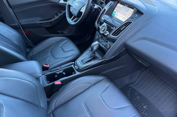 Focus Titanium, 4D Hatchback, 2.0L I4 GDI Ti-VCT Flex Fuel, 6-Speed Automatic with Powershift, FWD, White Platinum Clearcoat Metallic, Black Leather.