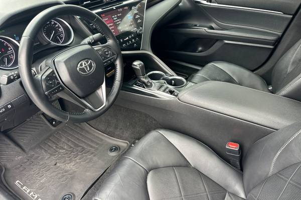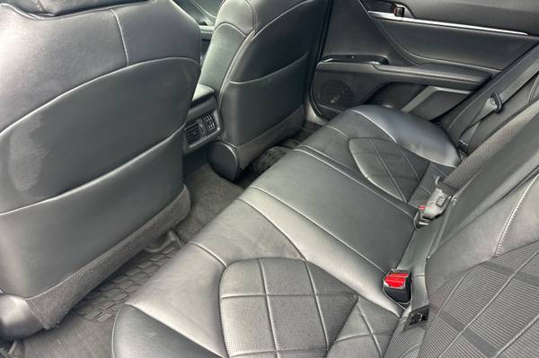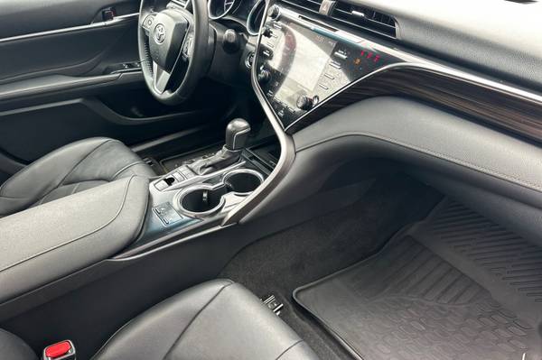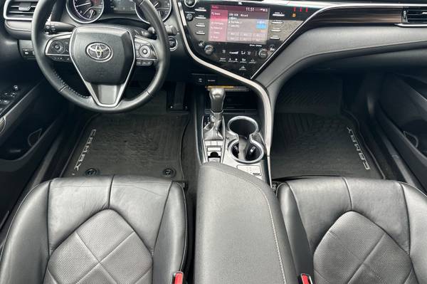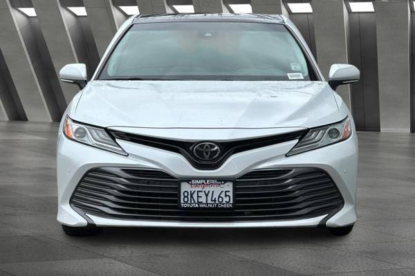 MECHANICAL & PERFORMANCE 3.5L V6 DOHC 24V D-4S Dual Injection w/ Dual VVT-i Engine 301 hp @ 6600 rpm / 267 lb-ft @ 4700 rpm Direct Shift 8-Speed ECTi Transmission w/ Sequential Shift Mode SAFETY & CONVENIENCE Toyota Safety Sense-P: Pre-Collision Sys w/Pedestrian Detection, Dynamic Radar Cruise Control, Lane Departure Alert w/ Steering Assist, Automatic High Beams Star Safety System: Enhanced VSC, Traction Control, ABS, EBD, Brake Assist and Smart Stop Technology LATCH-Lower Anchor & Tether for Children Anti-Theft System with Alarm Ten Airbags Blind Spot Monitor w/ Rear Cross Traffic Alert EXTERIOR 18" Chrome Machined-Finish Alloy Wheels with P235/45R18 Tires LED Headlights w/ Integrated LED DRLs w/ Auto On/Off Panoramic Glass Roof w/ Power Moonroof Dual Exhaust with Chrome Finisher Color-Keyed Heated Power Outside Mirrors INTERIOR Entune 3.0 Audio Plus JBL w/ Clari-Fi, Connected Nav Scout GPS Link App & App Suite 8" Tch Scrn, 9 Spkrs, Bluetooth, USB, AUX, SXM Leather-Trimmed Heated Front Seats w/ 8-Way Power Driver & Passenger Seats 10" Color Head-Up Display Leather-Trimmed Steering Wheel w/ Audio Bluetooth Phone & Voice Command Cntrls Backup Camera w/ Dynamic Gridlines 7" TFT Multi-Information Display Tire Pressure Monitor System Qi Wireless Charging Smart Key System w/ Push Button Start Dual-Zone Auto Climate Control, Camry XLE, 4D Sedan, 3.5L V6 DOHC 24V, 8-Speed Automatic, FWD, Wind Chill Pearl, Black w/Perforated Leather Seat Trim.