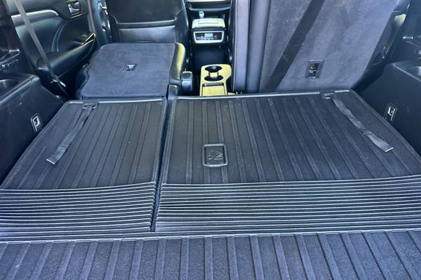 Navigation System., SE Package., 6 Speakers., AM/FM radio: SiriusXM., CD player., Air Conditioning., Automatic temperature control., Front dual zone A/C., Rear air conditioning., Rear window defroster., Power driver seat., Power steering., Power windows., Remote keyless entry., Speed-sensing steering., Traction control., 4-Wheel Disc Brakes., ABS brakes., Dual front impact airbags., Front anti-roll bar., Knee airbag., Low tire pressure warning., Occupant sensing airbag., Overhead airbag., Rear anti-roll bar., Power moonroof., Rear Bumper Protector (TMS)., Power Liftgate., Brake assist., Electronic Stability Control., Exterior Parking Camera Rear., Auto High-beam Headlights., Delay-off headlights., Front fog lights., Fully automatic headlights., Panic alarm., Security system., Speed control., Bumpers: body-color., Heated door mirrors., Mudguards (TMS)., Power door mirrors., Roof rack: rails only., Running Boards (TMS)., Spoiler., Turn signal indicator mirrors., All Weather Floor Liners., Auto-dimming Rear-View mirror., Cargo Tray., Driver door bin., Driver vanity mirror., Front reading lights., Garage door transmitter., Illuminated entry., Leather Shift Knob., Outside temperature display., Overhead console., Passenger vanity mirror., Rear reading lights., Tachometer., Telescoping steering wheel., Tilt steering wheel., Trip computer., 3rd row seats: split-bench., Front Bucket Seats., Front Center Armrest., Heated front seats., Leather Seat Trim., Power passenger seat., Reclining 3rd row seat., Split folding rear seat., Black Roof Rails., Cargo Cover., Passenger door bin., Roof Rack Cross Bars., Alloy Wheel Locks., Alloy wheels., Rear window wiper., Variably intermittent wipers., Dr & Fr Pgr Seat-Mounted Side., Dr Knee., Lthr Htd Fr Seats., 12-way Pwr Dr w/Lumbar., 4-way Psgr., Captain 2nd Rw., AM/FM CD/MP3/USB/AUX., HD., & SXM All Access 3-mo Trial., Bluetooth Phone/Music., 2 Second Row.,