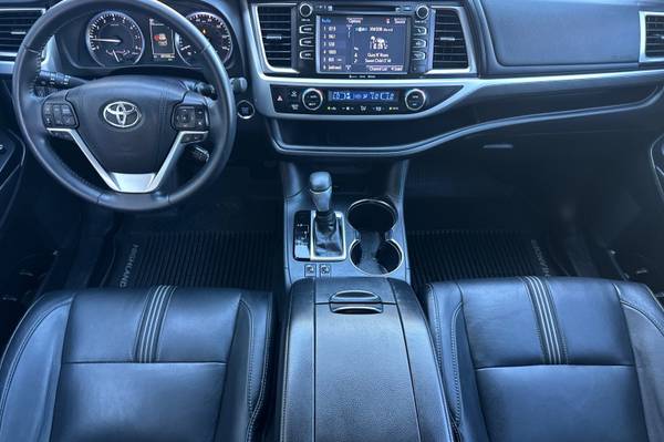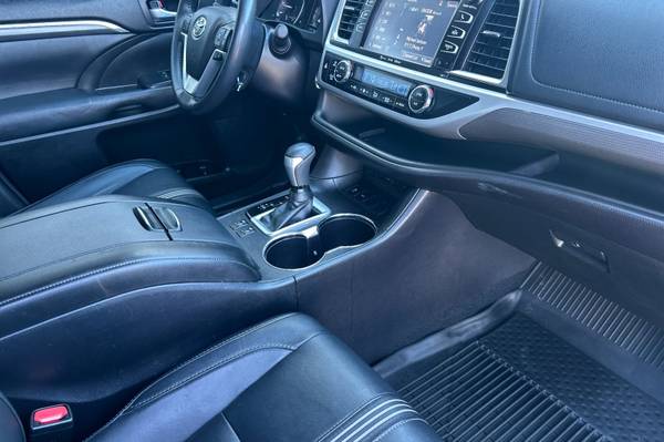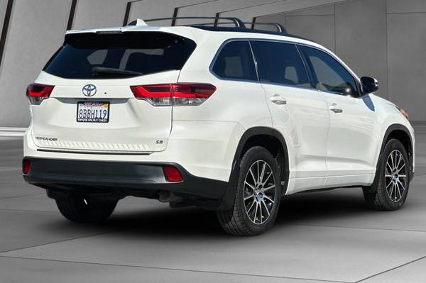 Accessories F FE 50 State Emissions F PC Special Color F SE SE Package All Content Included as Standard Equipment P 3T Roof Rack Cross Bars P 3Y Rear Bumper Protector P 5A Cargo Cover (Retractable) P MF Mudguards P RB Running Boards P WL Wheel Locks MECHANICAL & PERFORMANCE 3.5L DOHC V6 D-4S Engine with Dual VVT-i Direct Shift - 8AT (8 Speed Automatic) 5,000-lb Tow Capacity Power Assisted 4-Wheel Disc Brakes 19" Alloys w/P245/55R19 Tires;Temp Spare Stop and Start Engine System (S&S) Hill-Start Assist Control SAFETY & CONVENIENCE Toyota Safety Sense P (TSS-P): includes Pre-Collision System with Pedestrian Detection (PCS w/PD), Lane Departure Alert with Steering Assist (LDA w/SA), Auto High Beams (AHB) and Dynamic Radar Cruise Control (DRCC) Star Safety System (TM) 8 Airbags: Dr & Fr Pgr Adv Airbag Sys,Dr & Fr Pgr Seat-Mounted Side, Dr Knee, Pgr Seat-Cushion & 3-Rw Side Curtain Airbags Blind Spot Monitor w/Rr Cross Trfc Alert Smart Key; Alarm & Engine Immobilizer LATCH-Lwr Anchor & Tether for CHildren EXTERIOR Dark Acct'd Auto On/Off Hdlghts;FogLghts Projector-Beam Halogen Dark-Black Accent Headlights w/LED DRL Adj Power Liftgate w/Flip-Up Rear Window Power Tilt/Slide Moonroof with Sunshade INTERIOR Seating for 7; Lthr Htd Fr Seats, 12-way Pwr Dr w/Lumbar, 4-way Psgr, Captain 2nd Rw, 3rd Rw 60/40 Split Fold-Flat Seats Integrated 2nd Row Side-Window Sunshades Backup Camera with 8" display Entune Prem w/8" Touch-Screen:Nav,AM/FM CD/MP3/USB/AUX,HD,& SXM All Access 3-mo Trial, Bluetooth Phone/Music, App Suite 4.2" Color Nav-linked Multi-Info Display 5 Total USB ports: 3 Front, 2 Second Row, Highlander SE, 4D Sport Utility, 3.5L V6, 8-Speed Automatic Electronic with ECT-i, FWD, Blizzard Pearl, Black w/Leather Seat Trim.