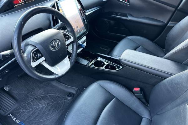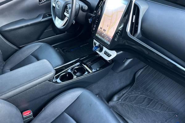 MECHANICAL & PERFORMANCE Hybrid Synergy Drive System, TZEV 1.8L DOHC 16V VVT-i 4-Cylinder Engine Active grille shutter EV/EV Auto/HV Modes 15" Alloy Whls w/Cvrs, P195/65R15 Tires Elec Pwr Steering(EPS);4-Whl Disc Brakes SAFETY & CONVENIENCE Star Safety System: Veh Stability Ctrl, Traction Control,ABS,Elect Brake-Force Distrib, Brake Assist & Smart Stop Tech Driver & Fr Psgr Advanced Airbag System Driver & Fr Psgr Seat Mounted Side, Side Curtain, Driver Knee, Psgr Seat Airbags Toyota Safety Sense(TM)P: Pre-Collision System w/Ped Detection, Lane Dep Alert w/Steering Assist, Auto High Beams,Full- Speed Rng Dynamic Radar Cruise Control LATCH(Lwr Anchors&Tethers for Children) Eng Immobilizer, Tire Press Monitor Sys EXTERIOR Quad-LED Headlights w/Auto On/Off Heated Power Outside Mirrors INTERIOR Smart-Flow Climate Control System 11.6" HD Multimedia Display Premium Audio w/NAV, Entune App Suite, Backup Camera, 6 Speakrs,Bluetooth 4.2" Color Dual Multi-Info Display SofTex-Trimmed Heated Fr Seats, 60/40 Split Fold-Down Rear Seats w/Center Console 3 Door Smart Key Sys Push Button Start w/Remote Illum. Entry Qi-compatible wireless smartphone charge Power Locks & Auto Up/Down Power Windows Lightweight Cargo Area Tonneau Cover Tire Repair Kit, Prius Prime Premium, 5D Hatchback, 1.8L 4-Cylinder DOHC 16V VVT-i, CVT, FWD, Magnetic Gray, Black w/SofTex Seat Trim.