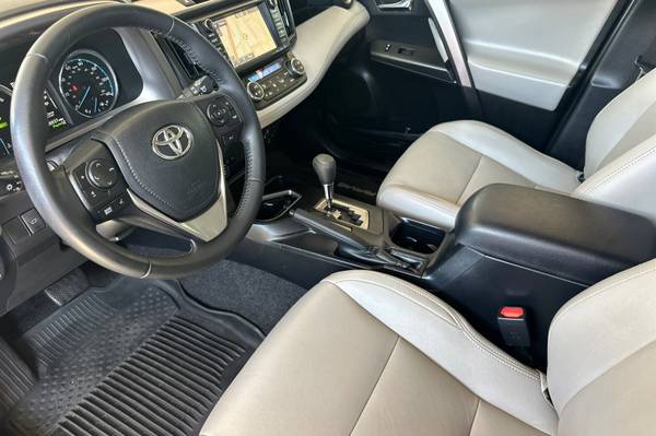 Accessories F CP Convenience Package: Height Adjustable Power Liftgate; Blind Spot Monitor with Rear Cross Traffic Alert; Front and Rear Parking Sonar; Entune Premium Audio with Integrated Navigation and App Suite - Includes The Entune Multimedia Bundle (7 In. High Resolution Touch-Screen with Split Screen Display, AM/FM, MP3/WMA Playback Capability, 6 Speakers, Auxiliary Audio Jack, USB 2.0 Port with iPod Connectivity and Control, Advanced Voice Recognition, Hands-Free Phone Capability, Phone Book Access and Music Streaming Via Bluetooth Wireless Technology), Siri Eyes Free, Entune App Suite, HD Radio, HD Radio Predictive Traffic and Doppler Weather Overlay, AM/FM Cache Radio, SiriusXM Satellite Radio With 3-Month Complimentary Sirius All Access Trial, and Gracenote Album Cover Art. F FE 50 State Emissions F H0 TRAC Program F H8 Fleet Credit MECHANICAL & PERFORMANCE Hybrid Synergy Drive System 2.5L DOHC 4-Cylinder Engine w/ VVT-i 194 Net System hp Electronically Controlled CVT (ECVT) All Wheel Drive w/ Intelligence (AWD-i) EV, Eco and Sport Modes SAFETY & CONVENIENCE Toyota Safety Sense (TM) P (TSS-P): Pre-Collision System w/ Pedestrian Detection (PCS w/ PD), Lane Departure Alert (LDA) w/ Steering Assist (SA), Auto High Beams (AHB), and Dynamic Radar Cruise Control (DRCC) Star Safety System: Enhanced Vehicle Stability Control, Traction Control, Anti-Lock Brakes, Electronic Brake Force Distribution, Brake Assist, and Smart Stop Technology LATCH-Lower Anchor & Tether for CHildren EXTERIOR 17" Alloy Wheels Power Moonroof, Roof Rails, Rear Spoiler Power Heated Outside Mirrors Privacy Glass- Rear Side, Qtr & Liftgate INTERIOR Dual Zone Climate Control w/Air Filter Entune Audio Plus, 6.1" Touch-screen, SiriusXM All Access Radio with 3-Month Complimentary Trial Leather-Wrapped Steering Wheel w/ Audio and Bluetooth Controls Backup Camera Reclining & Folding 2nd Row Seats Smart Key System with Push Button Start 12V Power Outlets (3), USB Port (1), RAV4 Hybrid XLE, 4D Sport Utility, 2.5L 4-Cylinder, CVT, AWD, Galactic Aqua Mica, Ash w/SofTex Seat Trim.