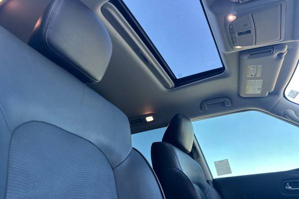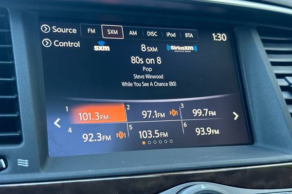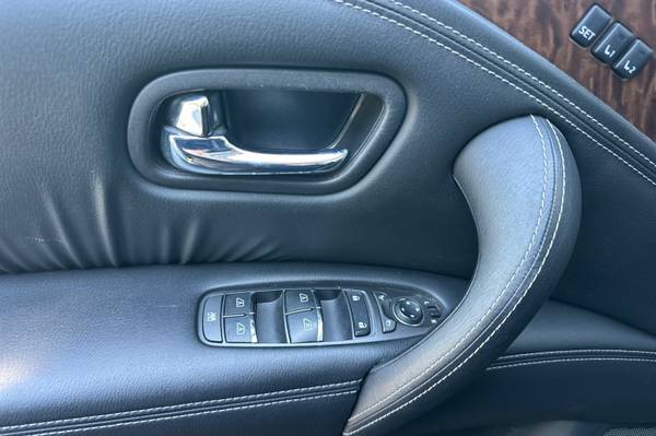 Steering wheel mounted audio controls., Four wheel independent suspension., Anti-whiplash front head restraints., Emergency communication system: NissanConnect Services., Power Sliding Moonroof w/Front Tilt & Rear Slide., Garage door transmitter: HomeLink., Heated Front Bucket Seats w/Driver Memory., Intelligent Back-Up Intervention (I-BI)., Intelligent Distance Control (I-DC)., Rear Cross Traffic Alert (RCTA)., Wheels: 20'' Machined Finish Painted Alloy.,