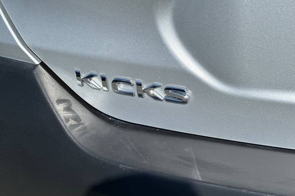 Kicks S, 4D Sport Utility, 1.6L 4-Cylinder DOHC 16V, CVT with Xtronic, FWD, Brilliant Silver Metallic, Charcoal Cloth.