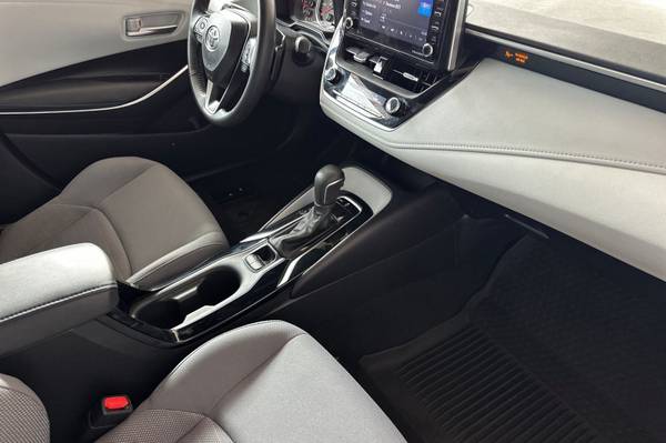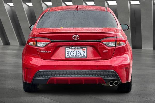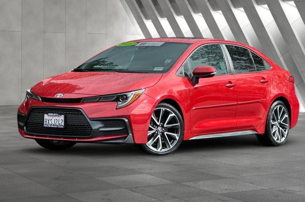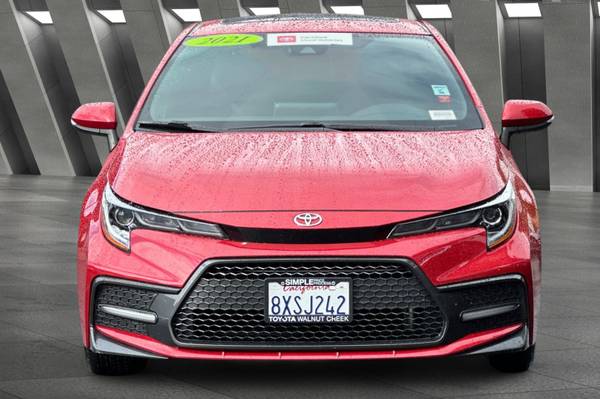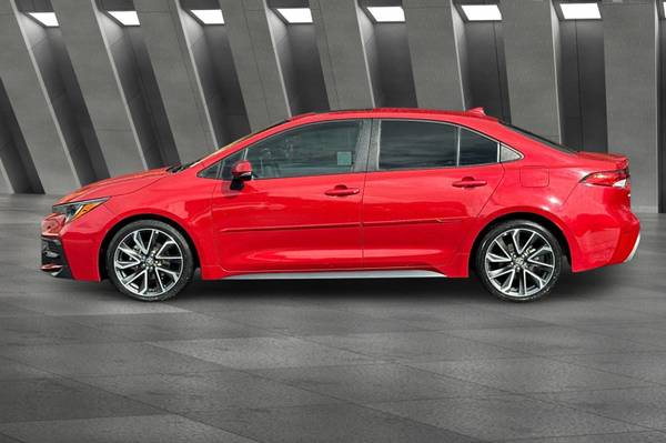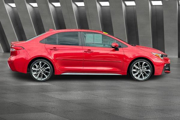 Accessories F FE 50 State Emissions F SO SE Premium Package: Blind Spot Monitor on Color-Keyed Heated Power Outside Mirrors w/ Turn Signal Indicators w/ Rear Cross-Traffic Alert, Smart Key System on Front Doors and Trunk w/ Push Button Start, Power Tilt/Slide Moonroof w/ Sliding Sunshade MECHANICAL & PERFORMANCE 2.0L 4-cyl Dual VVT-i, CVT Sport Suspension & Sport Drive Mode 18-in Machined Alloy Wheels w/ Dk Gray Accents Paddle Shifters SAFETY & CONVENIENCE Toyota Safety Sense 2.0: Pre-Collision Sys w/Pedestrian Detection, Full-Speed Range Dynamic Radar Cruise Control, Lane Departure Alert w/Steering Assist, Lane Tracing Assist, Automatic High Beams, Road Sign Assist 10 Airbags; Star Safety System Remote Keyless Entry System Safety Connect w/1-Year Trial EXTERIOR Sport Mesh Gray Metallic Front Grille LED Headlights w/Accent & DRL LED Tail & Stop Lights Color-Keyed Rear Spoiler Single Exhaust w/Dual Chrome Tips INTERIOR Audio - 8-in Touchscreen, 6 Speakers, Hands-Free Bluetooth Android Auto & Apple CarPlay Compatible, SiriusXM w/3-Month All Access Trial Premium Sport Adjustable Driver & Front Passenger Seats Leather-Trimmed Steering Wheel, Corolla SE, 4D Sedan, 2.0L I4 DOHC 16V, CVT, FWD, Barcelona Red Metallic, Moonstone w/SofTex Leather Seat Trim.