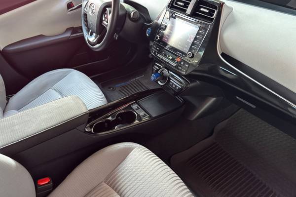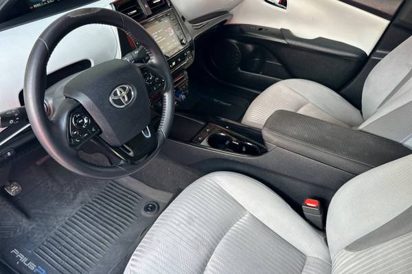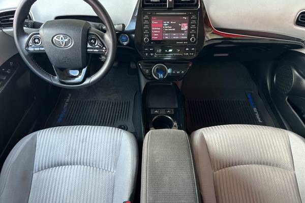MECHANICAL & PERFORMANCE Hybrid Synergy Drive System, TZEV 1.8L DOHC 16V VVT-i 4-Cylinder Engine EV, EV Auto, HV Modes 15-in Alloy Wheels with Covers Elec Pwr Steering(EPS);4-Whl Disc Brakes SAFETY & CONVENIENCE 10 Airbags; Star Safety System Toyota Safety Sense 2.0: Pre-Collision Sys w/Pedestrian Detection, Dynamic Radar Cruise Control, Lane Departure Alert w/Steering Assist, Automatic High Beams, Road Sign Assist Eng Immobilizer, Tire Press Monitor Sys Integrated Backup Camera Smart Key System w/ Push Button Start Safety Connect w/ 1-Year Trial EXTERIOR Quad-LED Headlights w/Auto-Off Heated Power Outside Mirrors INTERIOR Audio Plus - 7-in. Touchscreen HandsFree Bluetooth Phone/Music, USB Media Port, 2 USB Charge-Ports, SiriusXM w/3-Month All Access Trial Android Auto & Apple CarPlay Compatible Smart-Flow Climate Control System Fabric-Trimmed Heated Fr Seats, 5 Pass. Seating w/60/40 Split Rear Seats Dual Sunvisors w/Extenders Cargo Area Tonneau Cover Tire Repair Kit, Prius Prime LE, 5D Hatchback, 1.8L 4-Cylinder DOHC 16V VVT-i, CVT, FWD, Wind Chill Pearl, Moonstone w/Fabric Seat Trim.