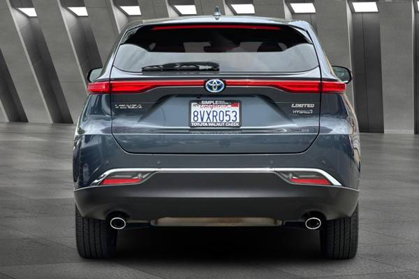 Accessories F AT Advanced Technology Package Head-Up Display (HUD) with Speedometer and Hybrid System Indicators, and Rain-Sensing Variable Intermittent Windshield Wipers F FE 50 State Emissions F SR Star Gaze Fixed Panoramic Roof MECHANICAL & PERFORMANCE 2.5L 4-Cylinder Engine Hybrid System w/ EV, ECO, NORMAL & SPORT Drive Modes 219 Combined System Net Horsepower Electronic Continuous Var. Tran. (ECVT) Electronic On-Demand All-Wheel Drive SAFETY & CONVENIENCE Toyota Safety Sense 2.0: Pre-Collision Sys w/ Pedestrian Detection, Full-Speed Range Dynamic Radar Cruise Control, Lane Departure Alert w/ Steering Assist, Lane Tracing Assist, Automatic High Beams, Road Sign Assist 8 Airbags; Star Safety System Backup Camera w/ Dynamic Gridlines and Rear Camera Washer Blind Spot Monitor w/ Front and Rear Parking Assist w/ Automated Braking Bird's Eye View Camera w/ Perimeter Scan 5-Door Smart Key System w/ Push Button Start Safety & Remote Connect w/ 1-Year Trial EXTERIOR Projector LED Headlights 19-in Multi-Spoke Super Chrome Alloy Wheels Hands-Free Power Liftgate INTERIOR Premium Audio - 12.3-in Touchscreen, Dynamic Navigation w/ 3-Year Trial, 9 JBL Spkrs incl Subwoofer & Amplifier, HandsFree Bluetooth Phone/Music, USB Media Port, 3 USB Charge Ports, SiriusXM w/ 3-Month All Access Trial, Android Auto & Apple CarPlay Compatible SofTex-Trimmed Seats Heated & Ventilated Power Front Seats Heated Steering Wheel 7-in Multi-Information Display Digital Rearview Mirror w/ HomeLink, Venza Limited, 4D Sport Utility, 2.5L 4-Cylinder DOHC 16V, Continuously Variable (ECVT), AWD, Coastal Gray Metallic, Black w/Perforated SofTex Seat Trim.