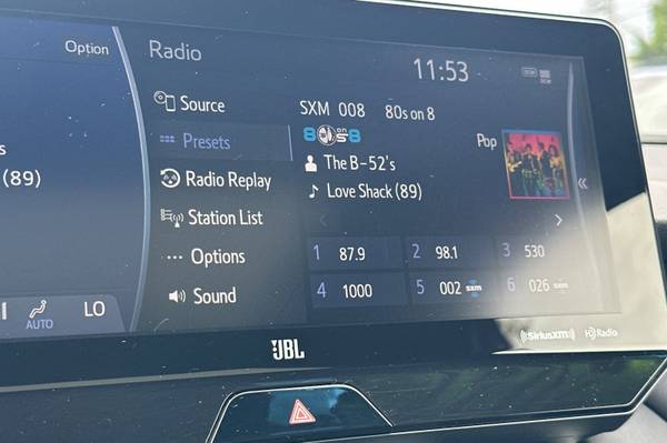 Navigation system: Dynamic Navigation (3-year trial)., Radio: Premium Audio w/Dynamic Navigation & JBL., Steering wheel mounted audio controls., Four wheel independent suspension., Garage door transmitter: HomeLink., Heated & Ventilated Front Bucket Seats., Rain-Sensing Variable Intermittent Wipers., Full-Speed Range Dynamic Radar Cruise Control., Lane Departure Alert w/ Steering Assist., Dynamic Navigation w/ 3-Year Trial., 9 JBL Spkrs incl Subwoofer & Amplifier., HandsFree Bluetooth Phone/Music., SiriusXM w/ 3-Month All Access Trial.,