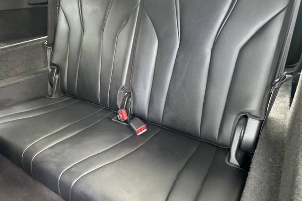 9 Speakers., AM/FM radio: SiriusXM., Audio memory., Radio data system., Air Conditioning., Automatic temperature control., Front dual zone A/C., HVAC memory., Rear air conditioning., Rear window defroster., Memory seat., Power driver seat., Power steering., Power windows., Remote keyless entry., Steering wheel memory., A/V remote: CabinControl., Speed-sensing steering., Traction control., 4-Wheel Disc Brakes., ABS brakes., Dual front impact airbags., Front anti-roll bar., Knee airbag., Low tire pressure warning., Occupant sensing airbag., Overhead airbag., Rear anti-roll bar., Power moonroof., Power Liftgate., Brake assist., Electronic Stability Control., Exterior Parking Camera Rear., Auto High-beam Headlights., Delay-off headlights., Fully automatic headlights., Panic alarm., Security system., Speed control., Bumpers: body-color., Heated door mirrors., Power door mirrors., Spoiler., Turn signal indicator mirrors., Apple CarPlay/Android Auto., Auto tilt-away steering wheel., Auto-dimming Rear-View mirror., Compass., Driver door bin., Driver vanity mirror., Front reading lights., Illuminated entry., Leather steering wheel., Outside temperature display., Overhead console., Passenger vanity mirror., Rear reading lights., Rear seat center armrest., Tachometer., Telescoping steering wheel., Tilt steering wheel., Trip computer., 3rd row seats: split-bench., Front Bucket Seats., Front Center Armrest., Heated front seats., Heated Front Sport Seats., Leatherette Trimmed Seats., Power passenger seat., Split folding rear seat., Passenger door bin., Alloy wheels., Rear window wiper., Speed-Sensitive Wipers., Variably intermittent wipers., 4.17 Axle Ratio., ECO., Lane Tracing Assist., Automatic High Beams., Road Sign Assist 8 Airbags., 6 Spkrs., USB Media Port., 3 USB Charge Ports.,