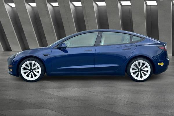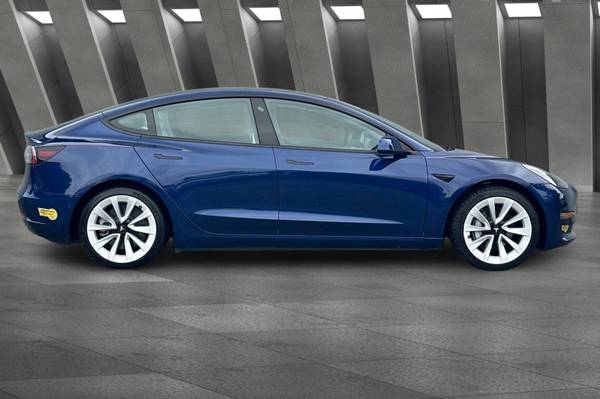 Model 3 Long Range, 4D Sedan, Electric Motor, 1-Speed Automatic, AWD, Deep Blue Metallic.