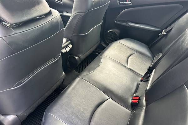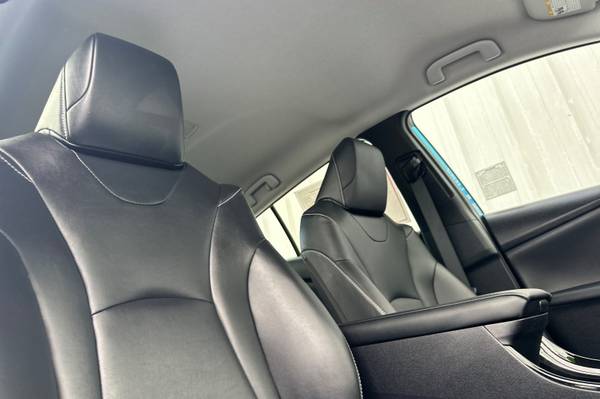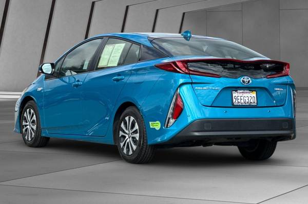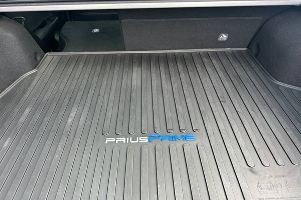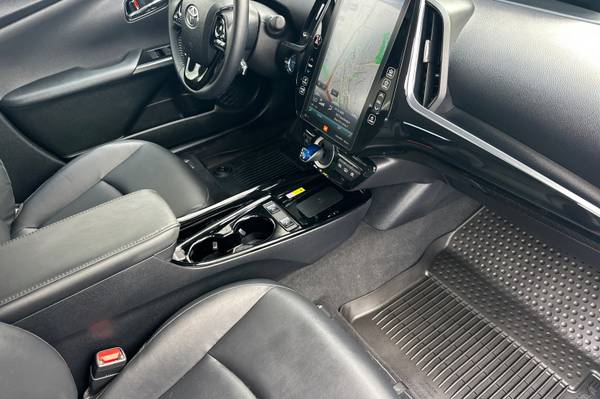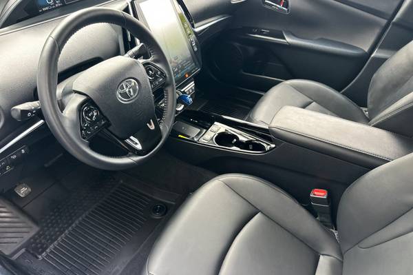 Accessories F AT Advanced Package F FE 50 State Emissions MECHANICAL & PERFORMANCE Hybrid Synergy Drive System, TZEV 1.8L DOHC 16V VVT-i 4-Cylinder Engine EV, EV Auto, HV Modes 15-in Alloy Wheels with Covers 4-Wheel Disc Brakes SAFETY & CONVENIENCE Star Safety System Toyota Safety Sense 2.0: Pre-Collision Sys w/Pedestrian Detection, Full-Speed Range Dynamic Radar Cruise Control, Lane Departure Alert w/Steering Assist, Lane Tracing Assist, Automatic High Beams, Road Sign Assist Blind Spot Monitor w/Rear Cross-Traffic Alert Eng Immobilizer, Tire Press Monitor Sys Intlgnt Clrnce Sonar w/Intgnt Park Asst 3 Door Smart Key System w/Push Button Start EXTERIOR Rainsensing Wipers w/Htd Pwr Ext Mirrors Quad-LED Headlights w/Auto On/Off LED Fog Lights and Accent Lights INTERIOR Smart-Flow Climate Control System Premium JBL Audio- 11.6-in Touchscreen, Integrated Navigation, 10 Speakers w/ Amplifier, SiriusXM w/3-Month All Access Trial, Apple CarPlay Compatible Color Head-Up Display SofTex-Trimmed Heated Front Seats 5 Pass. Seating w/60/40 Split Rear Seats Wireless Smartphone Charger FOR FULL PRODUCT DETAILS: Please Visit Toyota.com/PriusPrime, 5D Hatchback, 1.8L 4-Cylinder DOHC 16V VVT-i, CVT, FWD, Blue Magnetism, Black w/SofTex Seat Trim, ABS brakes, Active Cruise Control, Alloy wheels, Electronic Stability Control, Heated door mirrors, Heated Front Bucket Seats, Heated front seats, Illuminated entry, Low tire pressure warning, Remote keyless entry, Traction control.
