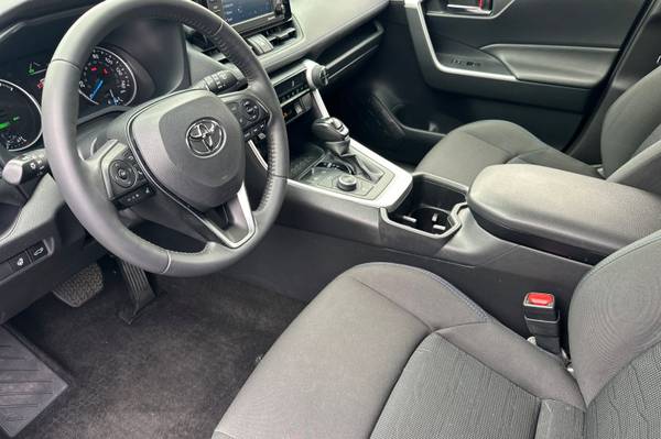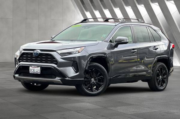 Accessories F CP SE Convenience Package- Height-Adjustable Power Liftgate & Power Tilt/Slide Moonroof F CY SE Weather Package - Heated Leather-Trimmed Steering Wheel, Heated Front Seats & Rain-Sensing Variable Intermittent Windshield Wipers w/ De-Icer Function F FE 50 State Emissions P 3T Roof Rack Cross Bars P D5 Door Edge Guard P WL Wheel Locks MECHANICAL & PERFORMANCE 2.5L 4-Cylinder Engine 219 Combined Net Horsepower Electronic Continuous Var. Tran. (ECVT) Electronic On-Demand All-Wheel Drive SAFETY & CONVENIENCE Toyota Safety Sense 2.0: Pre-Collision Sys w/ Pedestrian Detection, Full-Speed Range Dynamic Radar Cruise Control, Lane Departure Alert w/ Steering Assist, Lane Tracing Assist, Automatic High Beams, Road Sign Assist 8 Airbags; Star Safety System Backup Camera LATCH-Lower Anchor & Tether for CHildren Blind Spot Monitor w/ Rear Cross-Traffic Alert EXTERIOR LED Projector Headlights LED Daytime Running Lights 18-in Multi-Spoke Black Sport Alloy Wheels INTERIOR Audio Plus - 7-in Touchscreen, 6 Spkrs, Hands-Free Bluetooth Phone/Music, USB-A Media Port, 4 USB-C Charge Ports, SiriusXM w/3-Month Platinum Plan Trial, Android Auto & Apple CarPlay Compatible Dual Zone Auto A/C w/ Rear Air Vents Fabric Trimmed Seats Power Driver's Seat Smart Key System w/ Push Button Start For Full Product Details, Please Visit Toyota.com/RAV4Hybrid, RAV4 Hybrid SE, 4D Sport Utility, 2.5L 4-Cylinder, eCVT, AWD, Magnetic Gray Metallic, Black w/Fabric Seat Trim.
