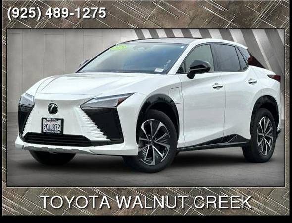 Accessories F CK Cold Area Package F DM Digital Mirror F FH Front Radiant Heater F LB Illuminated Front Badge F PJ Premium Paint F TP Technology Package 10-inch color Head-Up Display, Advanced Park, Digital Key (Digital Key requires Remote Connect subscription, 3 year trial included) 4G network dependent P 59 USB Phone Charging Cable Kit P DF Door Edge Film STANDARD FEATURES Powertrain DIRECT4 AWD; Dual Electric Motors Normal, Eco, and Sport Mode and Regenerative Braking Lithium-Ion Traction Battery Level 1 Charging Cord (120V) Exterior 18" alloy wheels Bi-LED Headlamps & LED Taillamps Panorama glass roof Power Rear Door w/ Kick Sensor Rain Sensing Wipers Interior NuLuxe Interior Trim Heated Steering Wheel, Heated & Ventilated Power Front Seats Front Driver Lexus Memory System Single Color Ambient Lighting w/ Shadow Illumination Wireless Phone Charger Safety/Advanced Technology Lexus Safety System 3.0- Lane Tracing Assist, Road Sign Assist, Pre-Collision System w/ Pedestrian Detection, All-Speed Dynamic Radar Cruise Control w/ Curve Speed Management Lane Departure Alert w/Steering Assist Intelligent High Beam Headlamps Blind Spot Monitor With Rear Cross Traffic Alert Digital Latch with Safe Exit Assist Panoramic View Monitor Intuitive Parking Assist with Auto Braking Smart Card Key Multimedia/Connected Services Lexus Interface w/ 14" inch touchscreen display Wireless Apple Carplay / Android Auto Capability Safety Connect, Service Connect, Remote Connect, Wi-Fi Connect (AT&T Hotspot, Integrated Streaming) Trials. Drive Connect with Cloud Navigation, Intelligent Assistant (Hey Lexus), and Destination Assist Trial. Paid subscriptions required after trials. 4G network dependent. See Lexus.com for details. SiriusXM 3-Month Platinum Trial Premium Audio System, 4D Sport Utility, Electric Motor, Single-Speed Automatic, AWD, Eminent White Pearl, Dapple Gray/Black w/Ultrasuede Seat Trim, ABS brakes, Alloy wheels, Electronic Stability Control, Front dual zone A/C, Heated & Ventilated Front Bucket Seats, Heated door mirrors, Heated front seats, Illuminated entry, Low tire pressure warning, Navigation System, Power Liftgate, Remote keyless entry, Traction control.