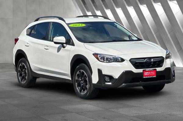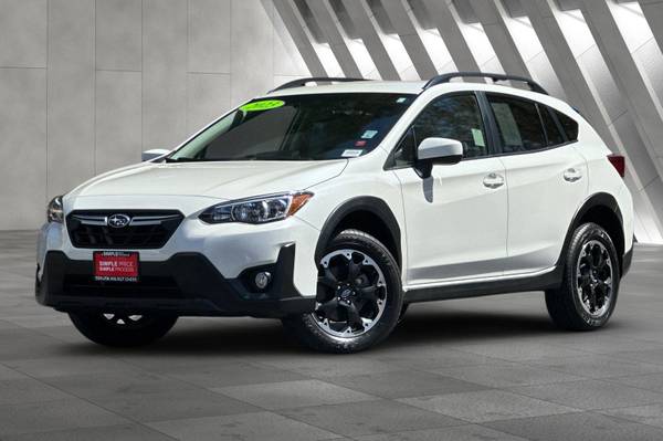 Crosstrek Premium, 4D Sport Utility, 2.0L 4-Cylinder DOHC 16V, Lineartronic CVT, AWD, Crystal White Pearl, Gray w/Orange Stitching w/Leather-Trimmed Upholstery.