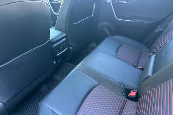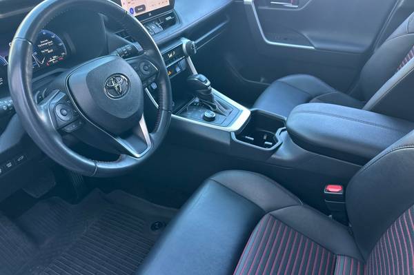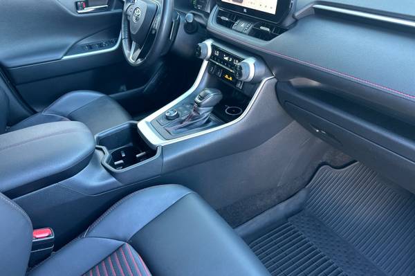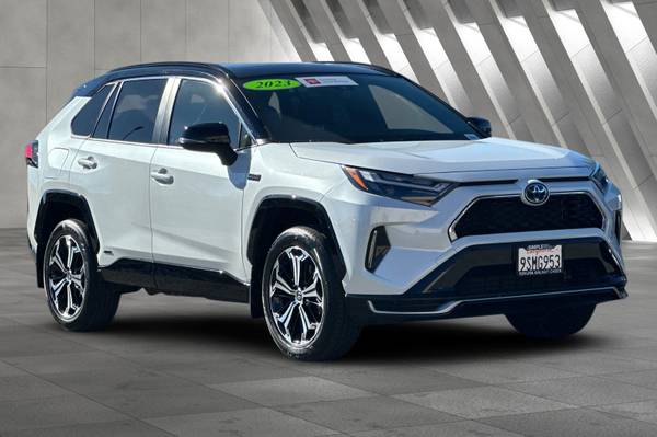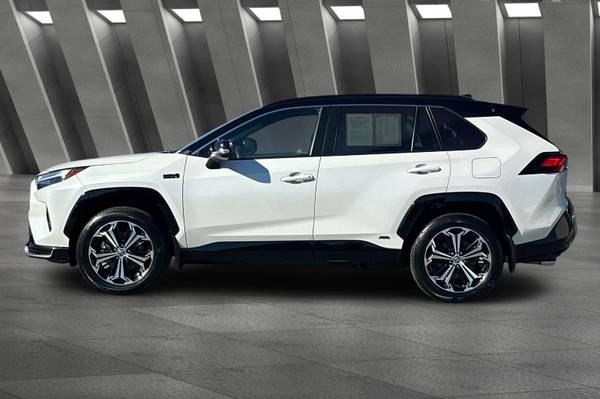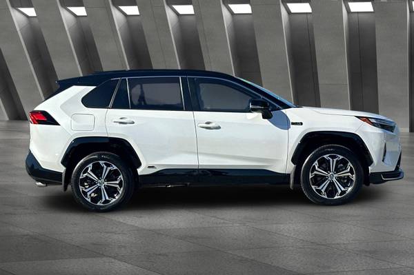 Accessories F CY Weather Package - Heated Leather-Trimmed Steering Wheel & Rain-Sensing Variable Intermittent Windshield Wipers w/ De-Icer Function F FE 50 State Emissions F HT Heated Rear Seats - Rear Outboard Passenger Heated Seating F PC Special Color MECHANICAL & PERFORMANCE 2.5L 4-Cylinder Engine Plug-In Hybrid System w/ EV & HV Modes 302 Combined Net Horsepower 6.6 kW Onboard Charger Charging Cable For Standard 120V Outlet Electronic Continuous Var. Tran. (ECVT) Electronic On-Demand All-Wheel Drive SAFETY & CONVENIENCE Toyota Safety Sense 2.5 : Pre-Collision Sys w/Pedestrian Detection, Full-Speed Range Dynamic Radar Cruise Control, Lane Departure Alert w/Steering Assist, Automatic High Beams, Road Sign Assist, Lane Tracing Assist 8 Airbags; Star Safety System Connected Services Capable. 4G Network Dependent. See Toyota.com For Details. LATCH-Lower Anchor & Tether For CHildren Anti-Theft System w/ Alarm Backup Camera w/ Dynamic Gridlines Blind Spot Monitor w/ Rear Cross-Traffic Alert EXTERIOR LED Projector Headlights Vertical LED Accent Lights Power Tilt/Slide Moonroof;Power Liftgate 19-in. Five-Spoke Alloy Wheels INTERIOR 10.5-in. Toyota Audio Multimedia w/ Wireless Apple CarPlay & Android Auto Compatibility SiriusXM w/3-Month Platinum Plan Trial JBL 11-Speakers incl. Subwoofer & Amp USB-A Media Port, 4 USB-C Charge Ports Dual Zone Auto A/C w/ Rear Air Vents SofTex-Trimmed Seats Heated Front Seats, Power Driver's Seat 12.3-in. Color LCD Gauge Cluster Auto-Dimming Rearview Mirror w/ HomeLink Wireless Smartphone Charging For Full Product Details, Please Visit Toyota.com/RAV4Prime, RAV4 Prime XSE, 4D Sport Utility, 2.5L 4-Cylinder DOHC, CVT, AWD, Wind Chill Pearl/Midnight Black Metallic, Black w/Mixed Media Seat Trim or SofTex Seat Trim.