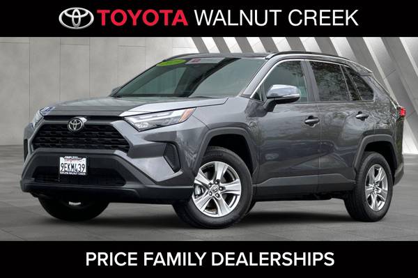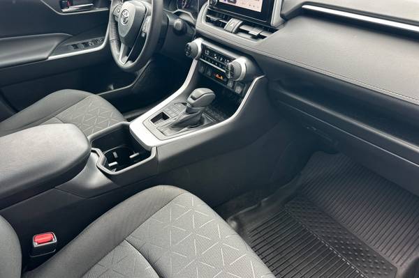 Accessories F CP XLE Convenience Package - Height-Adjustable Power Liftgate & Power Tilt/Slide Moonroof F CY XLE Weather Package - Heated Leather-Trimmed Steering Wheel, Heated Front Seats & Rain-Sensing Variable Intermittent Windshield Wipers w/ De-Icer Function F FE 50 State Emissions MECHANICAL & PERFORMANCE 2.5L 4-Cylinder Engine w/ Start-Stop 203 hp @ 6600 rpm / 184 lb-ft @ 5000 rpm 8-Speed Automatic Transmission All-Wheel Drive w/ Multi-Terrain Select SAFETY & CONVENIENCE Toyota Safety Sense 2.5: Pre-Collision Sys w/Pedestrian Detection, Full-Speed Range Dynamic Radar Cruise Control, Lane Departure Alert w/Steering Assist, Lane Tracing Assist, Automatic High Beams, Road Sign Assist 8 Airbags; Star Safety System Connected Services Capable. 4G Network Dependent. See Toyota.com For Details. LATCH-Lower Anchor & Tether For CHildren Backup Camera w/ Dynamic Gridlines Blind Spot Monitor w/ Rear Cross-Traffic Alert EXTERIOR LED Projector Headlights LED Daytime Running Lights 17-in. Five-Spoke Silver Alloy Wheels INTERIOR 8-in. Toyota Audio Multimedia w/ 6-Speakers, Wireless Apple CarPlay & Android Auto Compatibility SiriusXM w/3-Month Platinum Plan Trial USB-A Media Port, 4 USB-C Charge Ports Dual Zone Auto A/C w/ Rear Air Vents Fabric-Trimmed Seats Power Driver's Seat Smart Key System w/ Push Button Start For Full Product Details, Please Visit Toyota.com/RAV4, RAV4 XLE, 4D Sport Utility, 2.5L 4-Cylinder DOHC Dual VVT-i, 8-Speed Automatic, AWD, Magnetic Gray, Black w/SofTex Seat Trim.