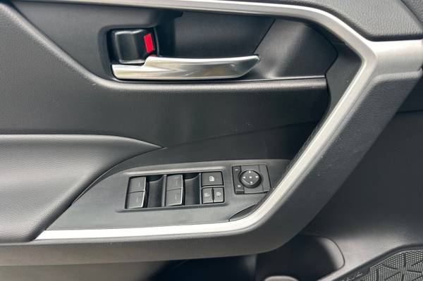 Convenience Package., XLE Grade Weather Package., 6 Speakers., AM/FM radio: SiriusXM., Radio data system., Radio: AM/FM/XM Audio System., Air Conditioning., Automatic temperature control., Front dual zone A/C., Rear window defroster., Power driver seat., Power steering., Power windows., Remote keyless entry., Speed-sensing steering., Traction control., 4-Wheel Disc Brakes., ABS brakes., Dual front impact airbags., Front anti-roll bar., Knee airbag., Low tire pressure warning., Occupant sensing airbag., Overhead airbag., Rear anti-roll bar., Tilt & Slide Moon Roof., Brake assist., Electronic Stability Control., Exterior Parking Camera Rear., Auto High-beam Headlights., Delay-off headlights., Fully automatic headlights., Panic alarm., Speed control., Bumpers: body-color., Heated door mirrors., Power door mirrors., Spoiler., Turn signal indicator mirrors., Driver door bin., Driver vanity mirror., Front reading lights., Illuminated entry., Outside temperature display., Overhead console., Passenger vanity mirror., Rear seat center armrest., Tachometer., Telescoping steering wheel., Tilt steering wheel., Trip computer., Fabric Seat Trim., Front Bucket Seats., Front Center Armrest., Front Seat Heating., Split folding rear seat., Passenger door bin., Alloy wheels., Rain Sensing Front Wipers., Rear window wiper., Variably intermittent wipers., Axle Ratio: 3.177., Lane Tracing Assist., Automatic High Beams., Road Sign Assist 8 Airbags., Please Visit Toyota.com/RAV4.,