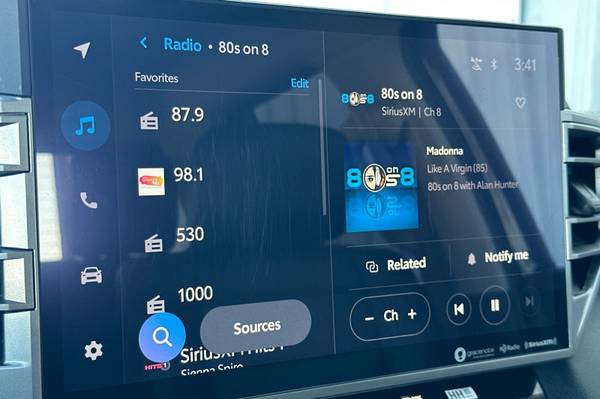 Navigation System., TRD Off-Road Package., 6 Speakers., AM/FM radio: SiriusXM., Radio data system., Air Conditioning., Automatic temperature control., Front dual zone A/C., Rear window defroster., Memory seat., Power driver seat., Power steering., Power windows., Remote keyless entry., Speed-sensing steering., Traction control., 4-Wheel Disc Brakes., ABS brakes., Dual front impact airbags., Front anti-roll bar., Knee airbag., Low tire pressure warning., Occupant sensing airbag., Overhead airbag., Blind Spot Monitor., Brake assist., Electronic Stability Control., Exterior Parking Camera Rear., Auto High-beam Headlights., Delay-off headlights., Front fog lights., Fully automatic headlights., Panic alarm., Safety Connect., Security system., Speed control., Auto-dimming door mirrors., Bedside TRD Off Road Decal., Black Emblem Overlay (TMS)., Black Tailgate Insert (TMS)., Bumpers: body-color., Front & Rear Mud Guards., Heated door mirrors., Offroad Front Skid Plate., Power door mirrors., Predator Drop Step (TMS)., Rear step bumper., Turn signal indicator mirrors., Apple CarPlay/Android Auto., Auto-dimming Rear-View mirror., Driver door bin., Driver vanity mirror., Front reading lights., Illuminated entry., Leather Shift Knob., Multi-Terrain Back Monitor., Outside temperature display., Overhead console., Panoramic View Back Monitor., Passenger vanity mirror., Rear reading lights., Rear seat center armrest., Tachometer., Telescoping steering wheel., Tilt steering wheel., Trip computer., Voltmeter., Front Bucket Seats., Front Center Armrest., Heated front seats., Power passenger seat., SofTex Seat Trim., Split folding rear seat., Ventilated front seats., Center Console Safe (TMS)., Passenger door bin., Ball Mount (TMS)., 20'' Alloy Wheels., Alloy wheels., Wheels: 20'' TRD Alloy., Variably intermittent wipers., 3.31 Axle Ratio., TRD grille., skid plates., mud guards., red TRD engine start button., TRD leather shift knob., aluminum sport pedals., Multi-Terrain Select (MTS)., DOHC 24V with Dual VVT-i., Lane Tracing Assist., Automatic High Beams.,