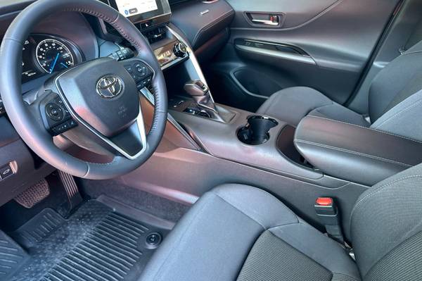 Packages P 2T All Weather Floor/Cargo Liner P CF Carpet Floor Mat/Carpet Cargo Mat Accessories F FE 50 State Emissions MECHANICAL & PERFORMANCE 2.5L 4-Cylinder Engine Hybrid System w/ EV, ECO, NORMAL & SPORT Drive Modes 219 Combined System Net Horsepower Electronic Continuous Var. Tran. (ECVT) Electronic On-Demand All-Wheel Drive SAFETY & CONVENIENCE Toyota Safety Sense 2.5 : Pre-Collision Sys w/Pedestrian Detection, Full-Speed Range Dynamic Radar Cruise Control, Lane Departure Alert w/Steering Assist, Automatic High Beams, Road Sign Assist, Lane Tracing Assist 8 Airbags; Star Safety System Backup Camera w/ Dynamic Gridlines Blind Spot Monitor w/ Rear Cross-Traffic Alert 3-Door Smart Key System w/ Push Button Start Connected Services Capable. 4G Network Dependent. See Toyota.com for details. EXTERIOR Projector LED Headlamps 18-in. Multi-Spoke Two-Tone Wheels Hands-Free Power Liftgate INTERIOR 8-in. Toyota Audio Multimedia w/ 6-Speakers, Wireless Apple CarPlay and Android Auto Compatibility SiriusXM w/3-Month Platinum Plan Trial 1 USB Media Port, 4 USB Charge Ports Fabric-Trimmed Seats w/ Power Driver's Seat Dual Zone Auto A/C w/ Rear Vents 7-in. Multi-Information Display Wireless Smartphone Charging For Full Product Details, Please Visit Toyota.com/Venza, Venza LE, 4D Sport Utility, 2.5L 4-Cylinder DOHC 16V, Continuously Variable (ECVT), AWD, Titanium Glow, Black w/Fabric Seat Trim.