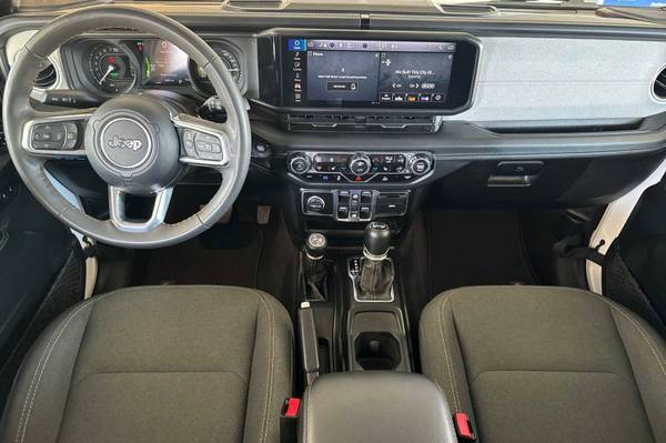 2024 Wrnagler Sahara 4XE, Clean Carfax, Previous Rental, 2.0L 4 Cylinder Turbo Charged Hybrid, Extra Clean White Exterior With A Spotless Black Cloth Interior.Looks Great Inside And Out! Color Matched Painted Hardtop, Wireless Apple Carplay/Android Auto, Rear Camera, Active Cruise Control And Foward Collision Warning System, 20Inch Factory Black Alloy Wheels And More! Tahoe Ready!